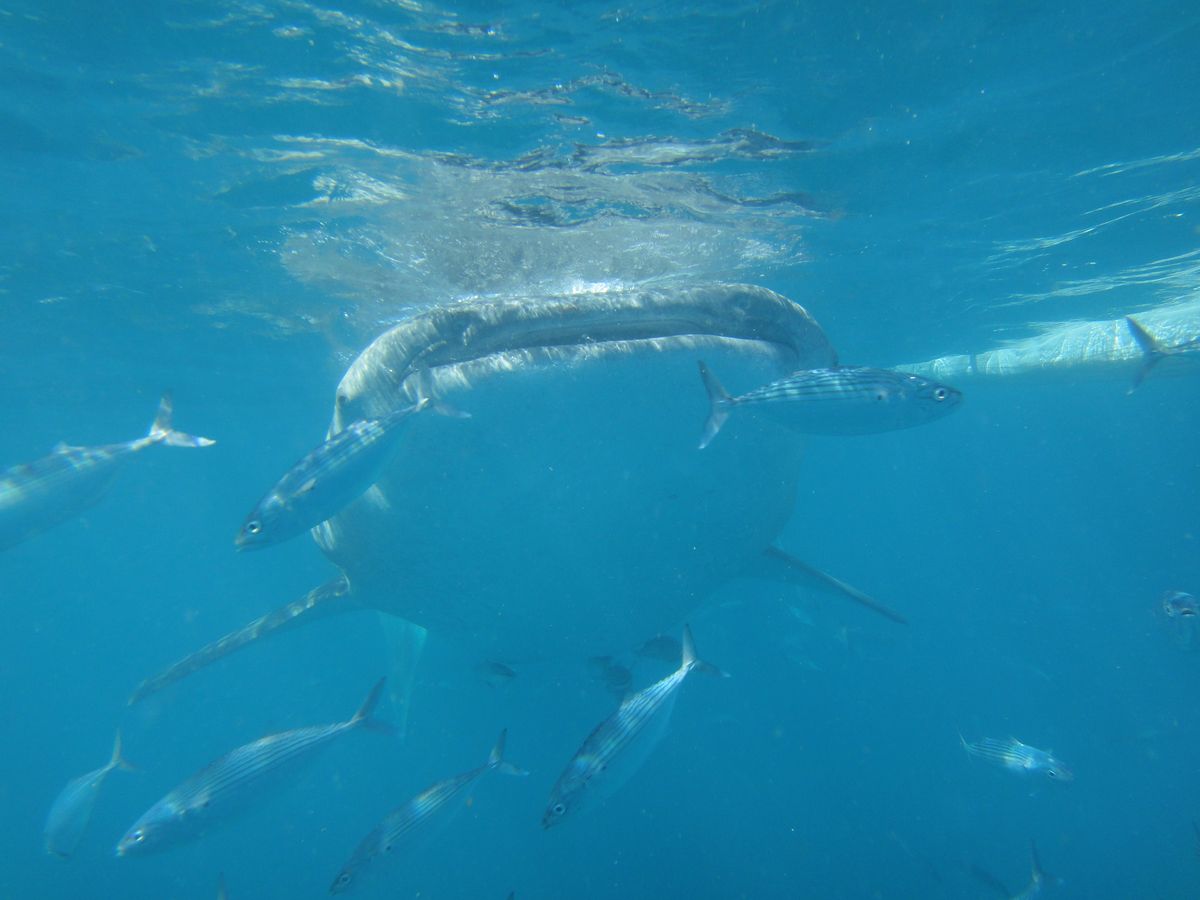 大きなジンベエザメが自分たちの目のまえを泳いで行きます。まずその大きさにビックリしましたが
