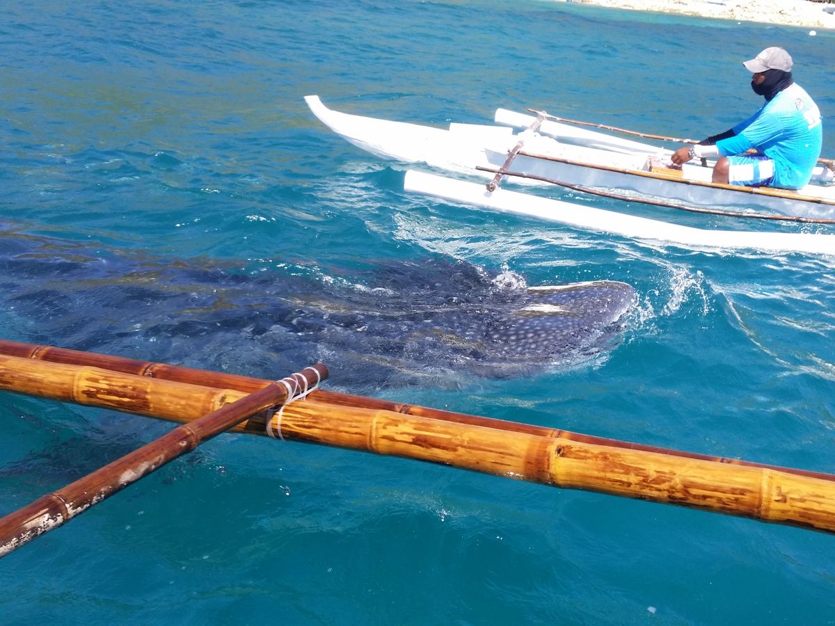 オスロブに到着し、綺麗なシャワールーム?で着替えができる場所に連れてってくれ、そこで着替えをすませいよいよジンベエザメに会いに行きます!会いに行くボートは、竹で浮かぶ小さな船で、水がどんどん入ってくるので、一緒に水をかきわけながら、目的地まで行きました(笑)
