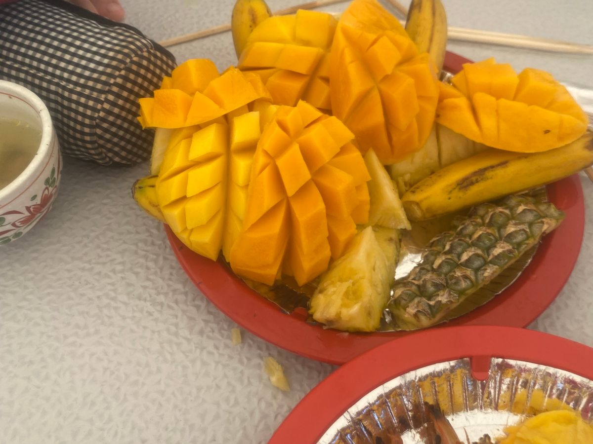 ランチのフィリピン風BBQランチは日本人にも親しみやすい味付けで、他にも温かいスープや、フィリピンの焼きそば、フルーツの盛り合わせなどがあり、たくさん遊んだ後のお腹を満たしてくれます。特にフルーツの盛り合わせは多くの方に喜んでいただいております。