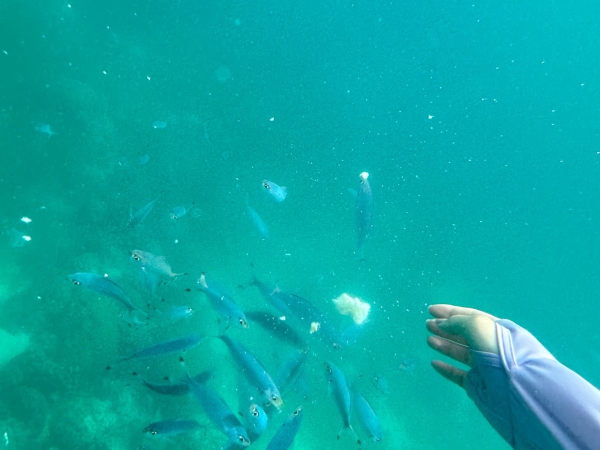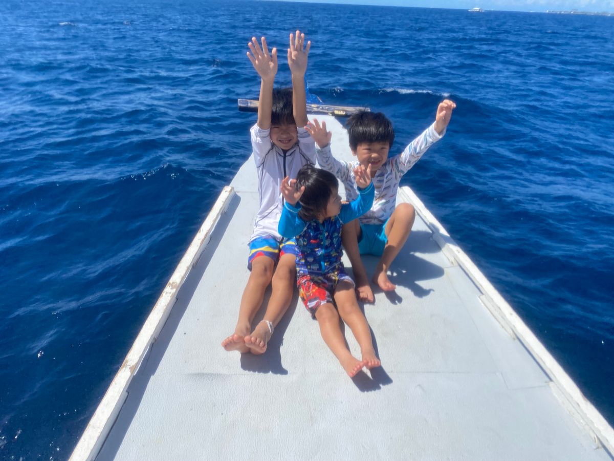 当日も小学2年の子供がいたのですが、シュノーケルでは現地のスタッフさんが一緒についてくれて初めは怖いと言っていたのに、魚も見れて楽しかったようで、最後は船から一緒にジャンプしていました。