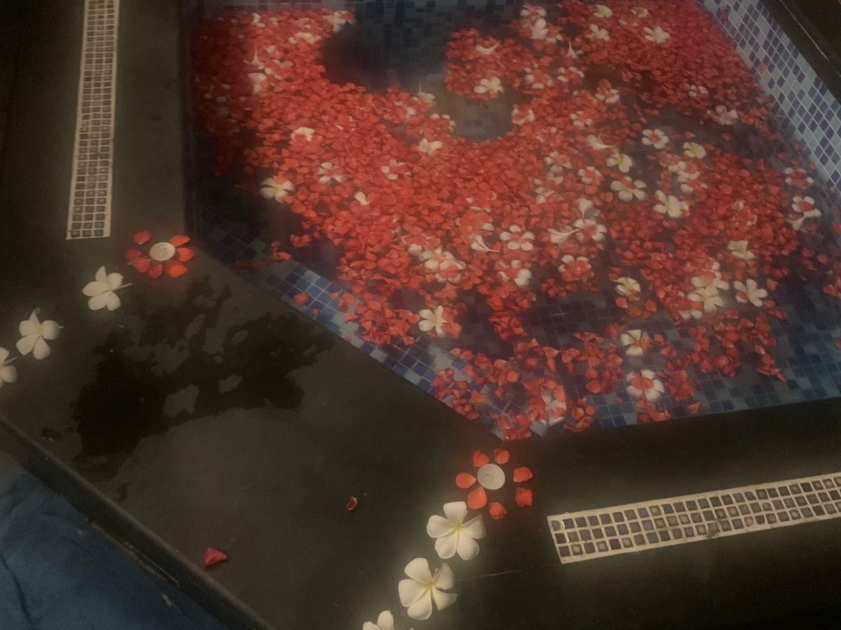 お花のお風呂が少しぬるかったのですぐ出てしまったのと、ヘッドマッサージは大丈夫かどうか聞かれましたがいつ頃ヘッドマッサージをしたのがわからなかったのが少し点数下げの要因です。