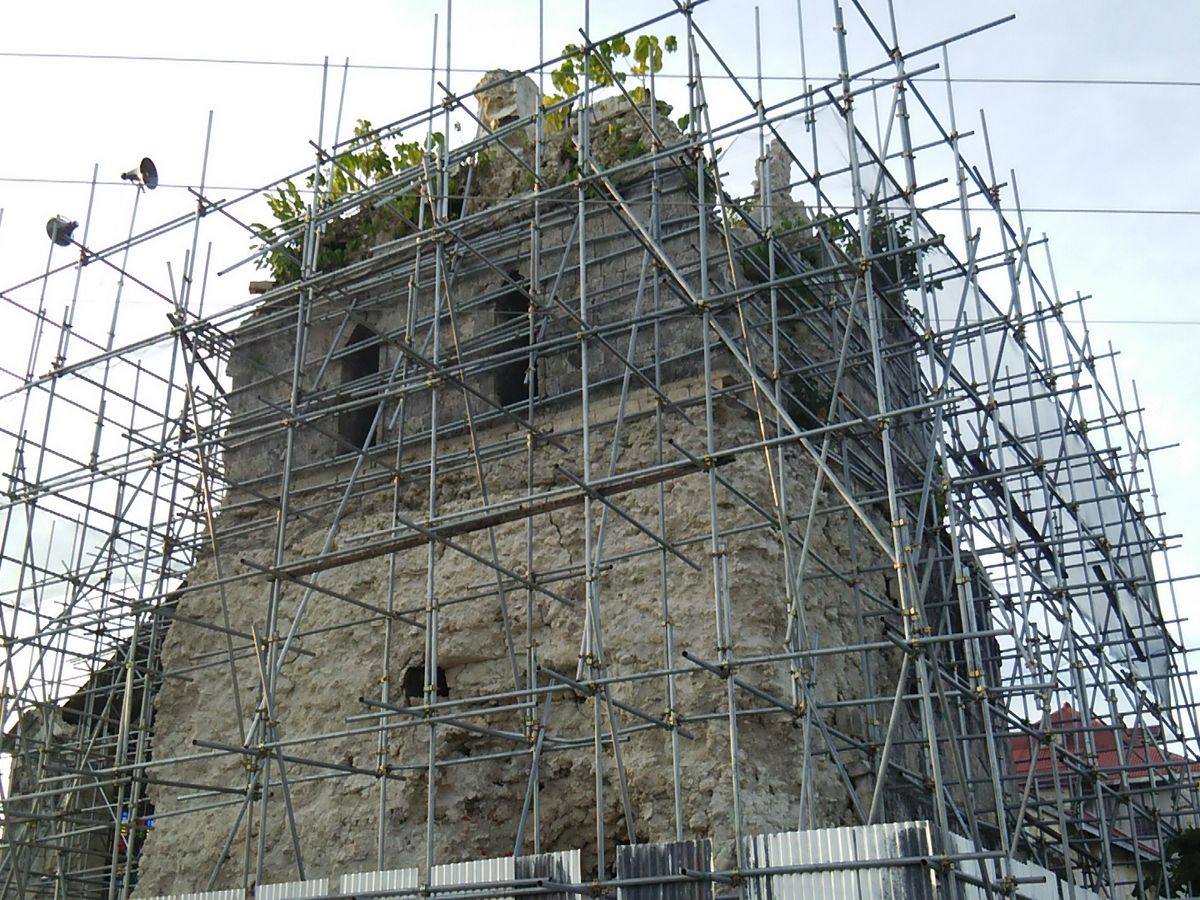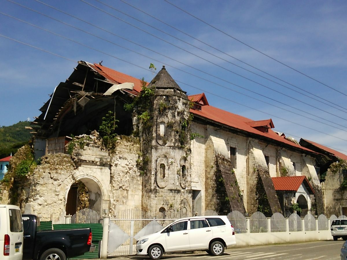 フィリピンで2番めに古いバクラヨン教会もまた壊れた部分を修復中でした。