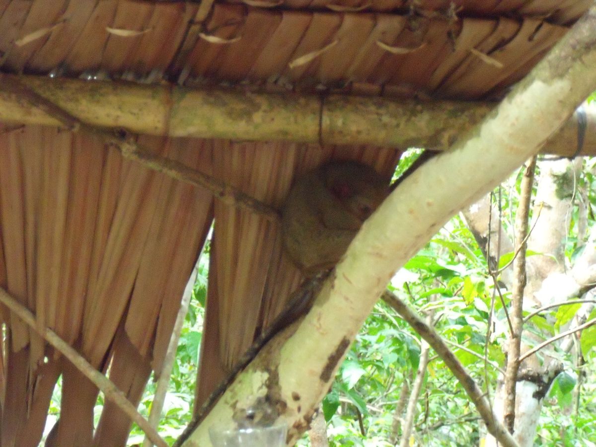 見れるかなぁ?と思いつつも添乗員についていくと、半餌付けの様で小屋の下でお昼寝中に遭遇。