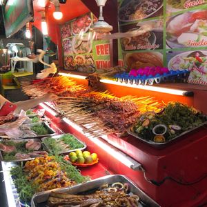 そのあと、ローカルな屋台で串焼き。豚・鳥・魚など選べます。小学生の子供はとてもおいしいと良く食べていました。ここでの飲み物は別料金です。