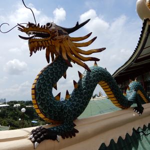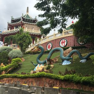 フィリピンの宗教といえば、キリスト教を思い浮かべ人が多いと思いますが、この市内ツアーでは、道観つまり道教寺院も観光コースに入っていました。セブ島の高台に位置しているので、海を隔ててマクタン島がのぞめます。