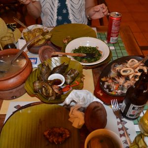 (この時のメニューは、ハマグリのスープ、カニ肉のつめもの、チキングリルを葉で巻いたもの、 イカ焼き、空芯菜、デザートのパイナップル) 日本人の口にも合いとても美味しかったです。
