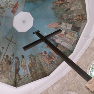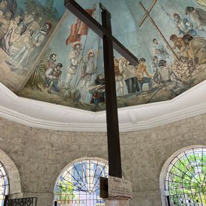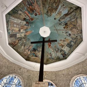 続いて、マゼランクロスの見学へ。内部に入って、水色の美しい天井絵を眺めていると、「シヌログ」というフィリピンに400年以上前から伝わるダンスを踊りながら、祈りをささげる女性の姿があり、フィリピンでは年1回大きな祭りもあって、シヌログは大切な伝統であると聞きました。