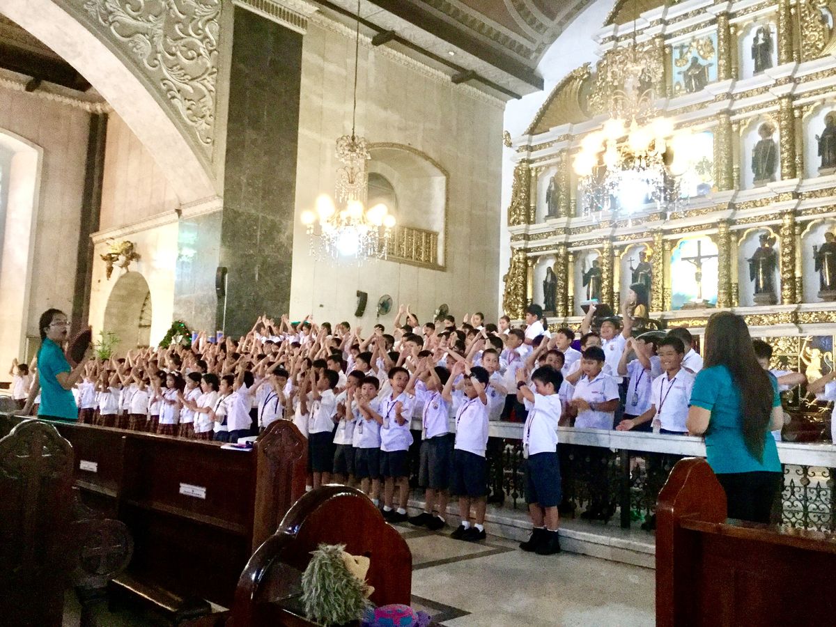 フィリピン最古の教会「サントニーニョ教会」では、小学生たちがクリスマスの出し物の練習中で、思いがけず、子どもたちの「ミニコンサート」を見せてもらえた気分でほっこりできました。