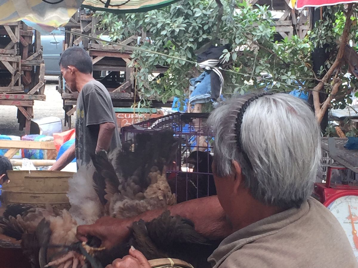 移動中、人の波であふれる大晦日の市場を車で通り抜けました。生きた豚や鶏が売られて活気があり、大変、興味深く楽しかったです。
