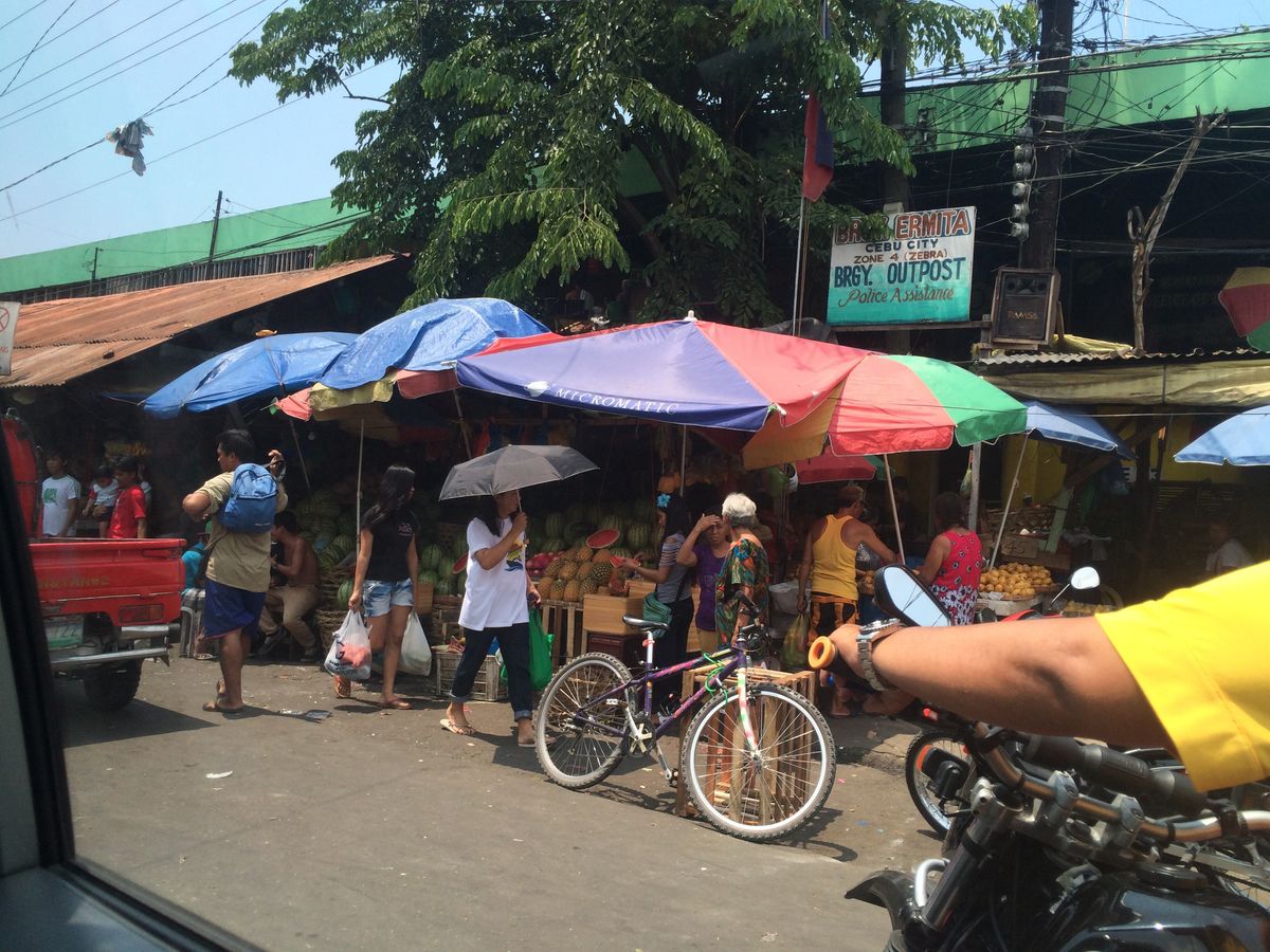 早速ワゴン車に乗りマクタン島→セブ島内へ。朝の通勤ラッシュも受けてか、軽く渋滞。バラック小屋(屋台)並木が続く、なんかもぅ壮絶とした、ただし物凄いエネルギッシュな空間をドシドシ走っていきました。雰囲気は戦後の日本。やたら活気のある闇市。