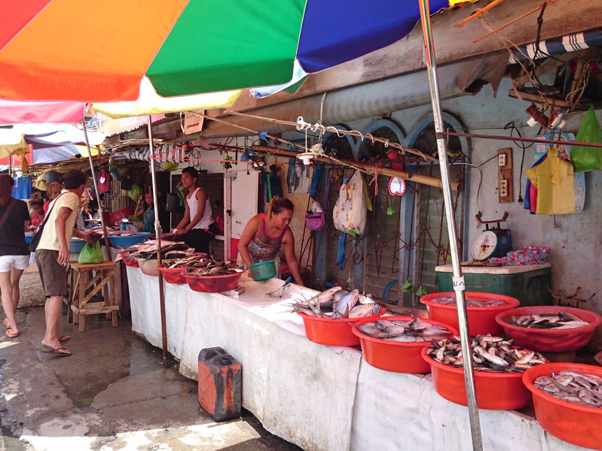 次に市場を車窓から。果物、野菜、米、雑貨、服、肉(生きたままのニワトリや鴨、はとなど)など何でも売っています。