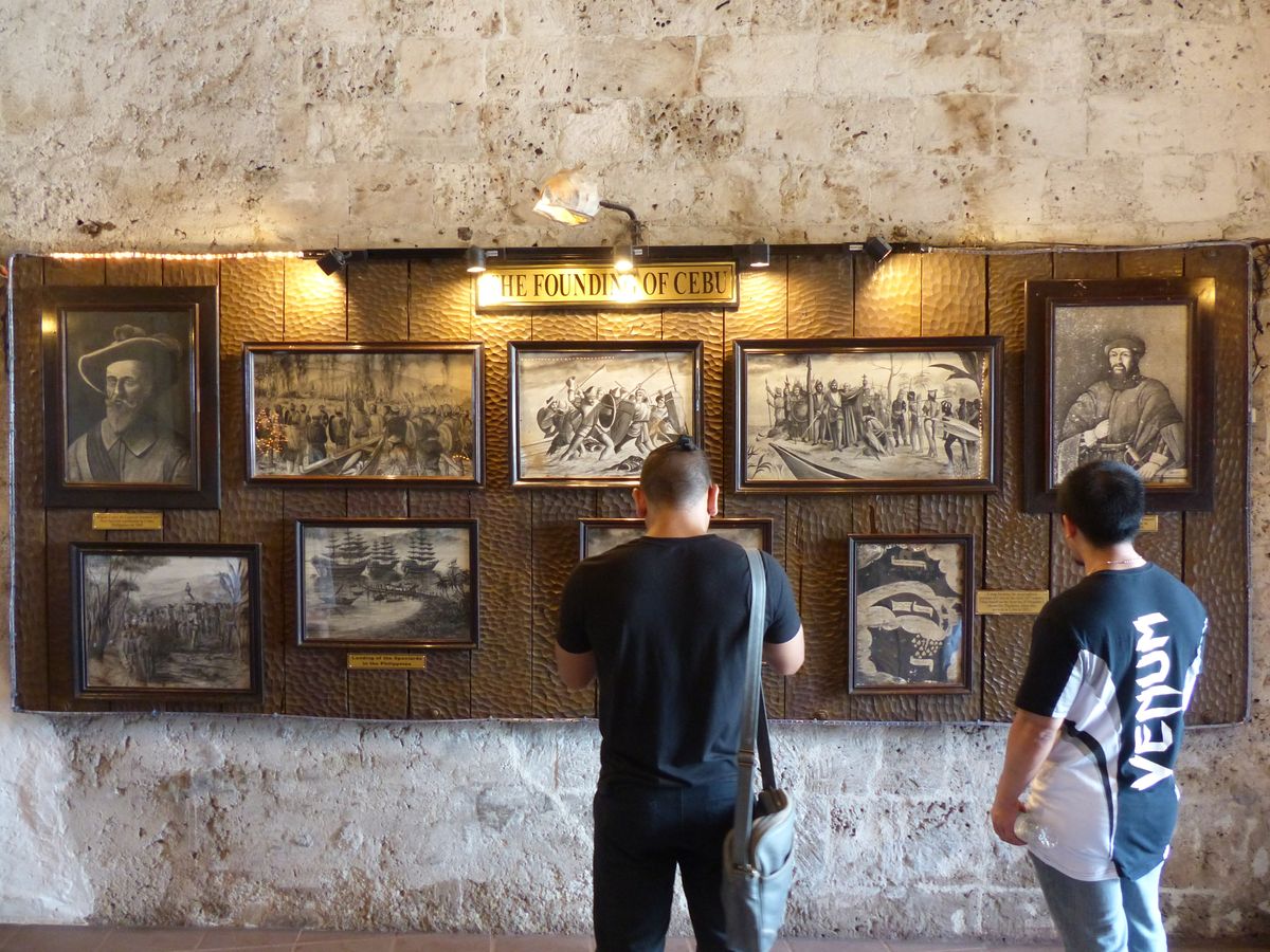③「サンペトロ要塞跡」で、セブ美人(ファナ王女)とイケメンの絵(宝塚のトップのような面立ち)が飾ってありました。マゼランを倒したラプラプさんもいました。