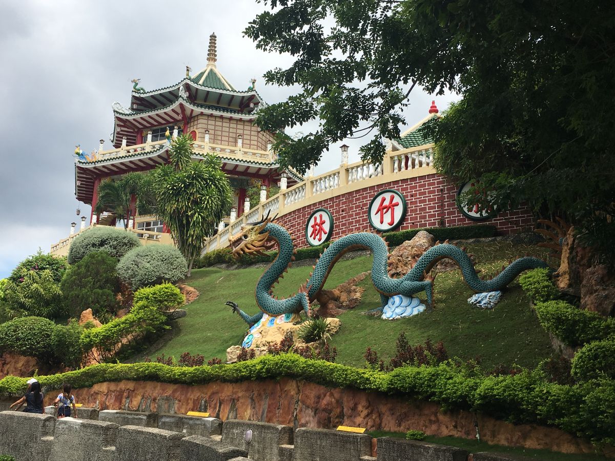 フィリピンの宗教といえば、キリスト教を思い浮かべ人が多いと思いますが、この市内ツアーでは、道観つまり道教寺院も観光コースに入っていました。セブ島の高台に位置しているので、海を隔ててマクタン島がのぞめます。