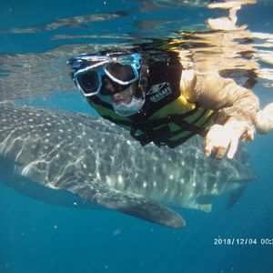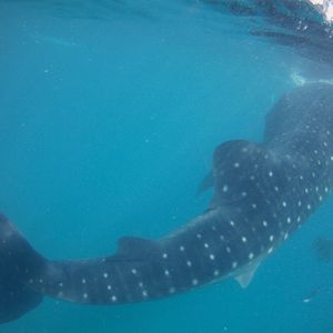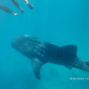 ジンベイザメスポットは、他沢山のツアーも来ていますし、シャワー、トイレ、着替え室も完備されてるので安心!専用ボートでスポットまで5分くらいで着きます。あとは、ジンベイザメが来るのを待つ!水中カメラでも写真を撮ってくれるのですが(有料1200円くらいかな?)映りもよく、全ての写真を一瞬で自分の携帯にアップロードしてくれるので、すぐに写真も見れてとってもおすすめでした(^ ^)