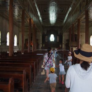 タグビララン港到着後まずはバクラヨン教会へ!大地震の修復で一部しか見れませんがとにかく、綺麗、美しい、感動です‼天井かなり高いです。これは是非見るべきです。
