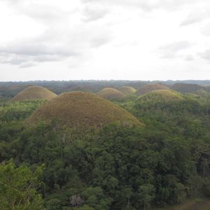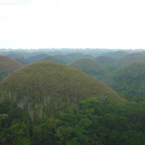 そして次はチョコレートヒルズへ。展望台までは階段が200段程あり、息を切らしながら展望台までかけあがると、眼下には大小様々なこんもりとした可愛い山々が点在する景色が広がっていました。さすが世界遺産、ここでしか見られない不思議で幻想的な景色でした。