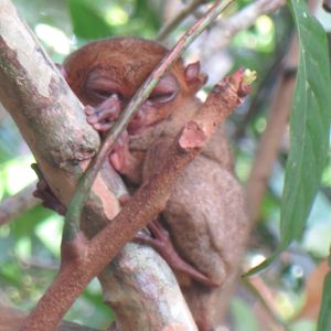リバークルーズの次は、ボホール島のみに生息するメガネザル、ターシャに会いに行きました。ターシャは夜行性ということもあり、ほとんど動きはしませんが時折大きな目をパチクリさせてとても可愛かったです。小さくて見つけにくいですが、木の葉を傘にして4匹くらい佇んでいました。ターシャはストレスにとても弱い生き物です。フラッシュは禁止、無理に近づいての撮影も自重しましょう。できれば望遠レンズを持って行くと良いでしょう。