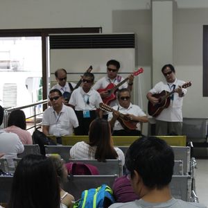港から8時に出るフェリーに乗ります。船が出るまで待合場所でしばし休憩、カフェもあります。BLINDたちが生バンドで見送ってくれました。