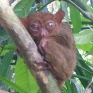 ランチでお腹が満たされたら、また1時間くらい移動して、メガネザルを見に行きました!以前は触れたそうですが、数年前から保護のためにNO TOUCH! NO FLASH!と言われました。夜行性なので顔をしっかり拝むことはできませんでしたが、手の届く距離に近づけました!最大でも12センチしかないという世界最小のサル、フィリピンでしか見られないそうです。