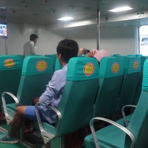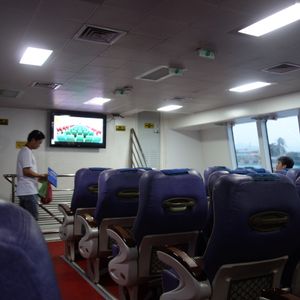 港から高速船で2時間ほど。船内はクーラーガンガンでパーカーや長袖がないと辛いかもしれません。船内では行き帰りともに映画のDVDをながしてます。船外デッキなんかはなく、本当に移動のみの時間なので暇を潰せる準備を。