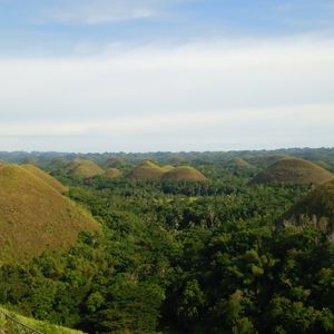 ボホール島は、セブ島からフェリーで約2時間です。港に到着するとガイドさんが待っています。友人と二人で参加しましたが、他の参加者と合流して約20名での観光でした。教会、川下り、ターシャ(メガネザル)、チョコレートヒルズなどの見学でしたが、チョコレートヒルズの景色は素晴らしくそれだけでも満足のツアーでした。川下りの船は、バイキングの昼食付きですが、品数はあまりなく期待できるものではありませんが、バナナがとても美味しかったです。