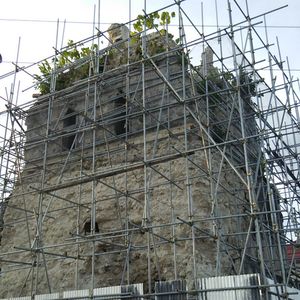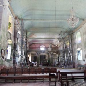 フィリピンで2番めに古いバクラヨン教会もまた壊れた部分を修復中でした。