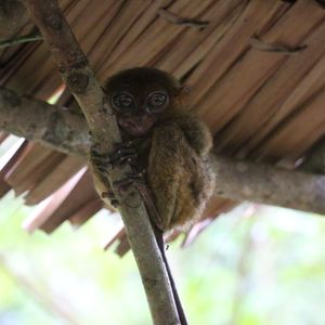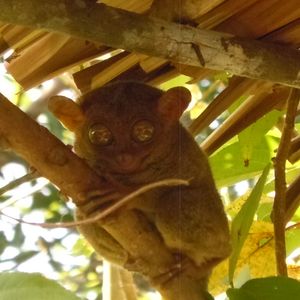 オトナでも10センチ位の小さな小さなおサルさんでした。夜行性ですが昼でも大きな目を開けてくれたので、あの特徴のある顔をちゃんと見れて良かったです。