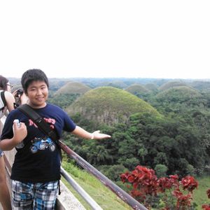 2時間後ボホール島に到着すると、バスが待機していて沢山の日本人観光客が同乗しました。バスの中では、日本語が堪能な現地ガイドさんが色々な説明をしてくれて、フィリピンやボホール島について知る事ができました。その後ボートに乗りランチをしながら川下り、フィリピン料理は...まずまずのお味でしたが、現地の味を知る事ができました。そして、ボートから子供たちのバンブーダンスを鑑賞。一緒に写真も撮らせてもらいました。その後には、チョコレートヒルズへ!! これぞ自然が織りなす七不思議!千もの岡が一面に!!是非、ご覧になってください!また、メガネザルのようなネズミ『ターシャ』もパークの中、あちらこちらで出会うことができました。昼間は寝ているようですが、ラッキーなら起きている写真も撮る事も可能です!私はウィンクの『ターシャ』をGet!!