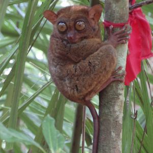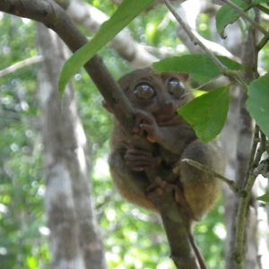 世界最小級といわれるサル~がボホールにいます。夜に活動し肉食だそうで、昼間はなかなか眼をあけてくれません。