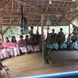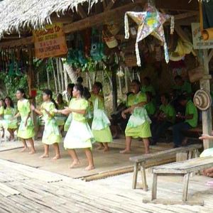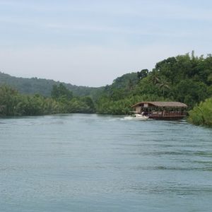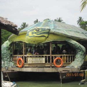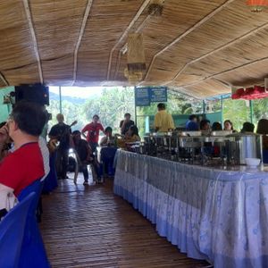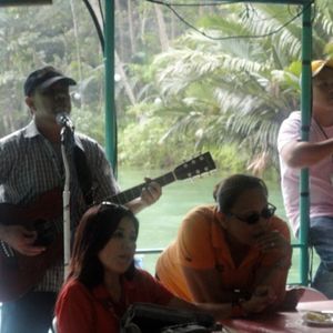 高速艇の途中からぽつぽつと雨が落ち始め、リバークルーズの船に乗り込むあたりから激しく降り出しました。屋根付きなので濡れることはなかったが、上陸しての現地住民とのふれあいが出来なかったのが残念でした。フィリピン料理のバイキングは、味も食べやすくしてあり、なくなればすぐ補充してくれるので充分な量ありました。