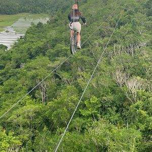 ジップバイクは山と山の間をワイヤーで固定された自転車で進みました。ワイヤーで固定されているので安定感がありつつも、爽快感を味わえました。
