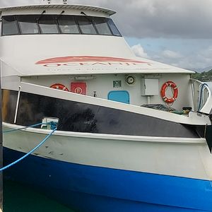 朝は記載の通り港まで送迎してくださり、係の方からチケットを渡されます。港に軽食は売っていたのですが、用意した方が無難です。その後高速艇に約2時間揺られます。冷房が効きすぎているので長袖の用意はしましょう。