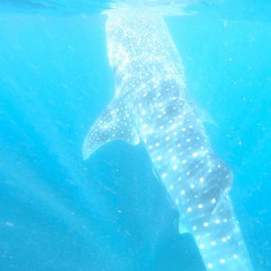 最初の目的地、ジンベイザメツアーは正直過酷そのものでした。私たちが参加した日は波が大荒れ。いかだに乗り込み50m程沖まで進み、ジンベイザメスポットで海に入ります。命綱はライフジャケットのみ。溺れないように必死になりながら、なんとかジンベイザメを見ることができました。近すぎて感動します。 (Goproか水の中に入れられるスマホケースを持っていくのが良いと思います。私たちは波が荒れすぎて何も撮れませんでしたが…。)船酔いしやすい人は注意してください。
