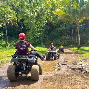ツアー参加者の人数が5人と少なかったので、バギーとジップバイク両方体験できました。バギーは多分敢えて整備されていない道を走り、チョコレートヒルズが見える展望台の麓まで行きました。展望台は階段が急で疲れましたが、頂上がとても見晴らしが良く登って良かったです。係員さんが撮ってくれる写真とムービーがプロのようで素敵な思い出になりました。