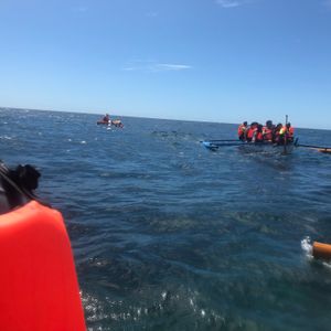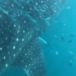 手漕ぎボートで数分でポイントに到着。びっくりするほど近くにジンベイが…大きな口に吸い込まれるかと思うほどの迫力!大満足でした!
