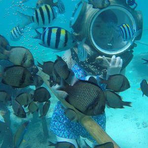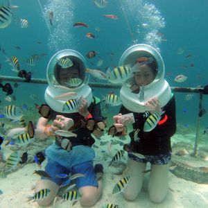 マクタン島に着いてからの前日予約で少し不安もありましたが、ホテルまで迎えに来ていただき、日本人スタッフの方も数人いて、とても安心して楽しむことができました。また施設は有名なホテルの中にありとてもいい環境でした。シーウォーク体験は初めてでしたが、始めにしっかりとした説明を受け、私たち2人に対しスタッフ3名が一緒に潜ってくれて、とても安全な環境で体験ができました。魚への餌やりをさせてもらったり、たくさん写真を撮ってもらったりと、本当に満足のいく時間となりました。ありがとうございました!