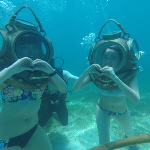 å®¶æïŒäººã§åå ããŸãããæ¥æ¬èªã§èª¬æããããå®å¿ã§ãããæµ·ã®äžã¯ãããã§ã倢ã®äžçã®ããã§ãããéããããããã£ãŠããŠãããŸããããã«ã¡ããã¯æã£ãããéãã£ãã§ããã§ããæµ·ã®äžã§ããŒããæãã¯ãªããšãå°ãæµ®ãæãã§ããã