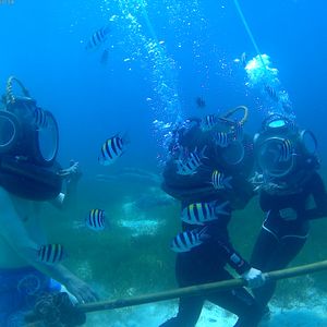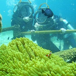 プロのガイドが海の中をご案内したくさんの魚たちを目の前に散歩ができる感動型アクティビティ、シーウォーカー。