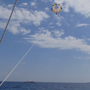 パラセーリングはびっくりするほど高くまで上げてくれます。海を見ると吸い込まれるようで怖かったです。けれど遠くを見ると鳥になった気分でこんな体験をさせてもらえて満足です。降りる時も上手に船上に揚げてくれます。