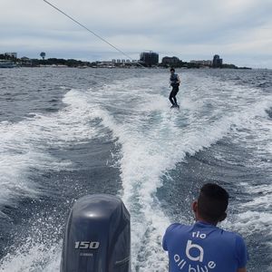 最初はとても苦戦しました。ウェイクボードをするのは初めてだったので、何度も海に叩きつけられましたが、立てたときの達成感は半端じゃなかったです