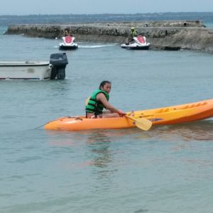 友人と二人でこのツアーに参加しました。まずShangri-laホテル所有のビーチでのマリンスポーツだったので、本当に綺麗な透き通った海でした。今回はマリンスポーツ四種を体験したのですが、どれも本当に楽しかったです!各種アクティビティの前には、日本人の方が日本語で説明してくれるので安心ですシーウォーク、バナナボート、お昼休憩を挟んで、ジェットスキー、パラセーリングをしました。知らされていた順番とは違いましたが、逆にこの順番で体験できてすごく良かったですお昼ご飯は日本食なので、しばらくこっちにきて日本食を食べていなかった私達にとってはとても嬉しかったです。ジェットスキーについては、日本だと運転するのに免許がいりますが、こちらでは免許なしで自分たちで自由に運転できて、かなり満足でした!四種やってどれも最高でしたが、最後のパラセーリングは本当に良かったです。是非みなさんにも体験していただきたいです!