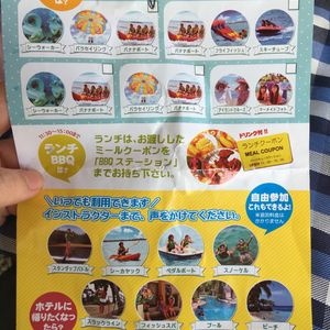 パラセーリングとシーウォークとバナナボートを予約しましたが、シュノーケルとフィッシュスパなど何個かただで遊べるので選んでいーよといわれました!私たちはフィッシュスパだけおねがいしました。