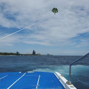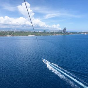セブでマリンスポーツをしたいと思いこのツアーに参加しました。決め手は遊び放題、日本語ガイド付きというところでした。宿泊先のホテルまでの送迎があるのは本当に楽でした。また昼食も付きバスタオルの貸し出しもあるので水着さえあれば遊べる感じでした。楽しみにしていたパラセーリングはかなり高いところまでいき、まるで鳥になったようでした。カメラを渡せば船から写真を撮ってもらえました。ジェットスキーはスピードが出て最初は少し怖かったですが、徐々に慣れていき風が気持ちよかったです。途中から操縦もさせてもらえ、貴重な体験が出来ました。他にもバナナボートなどのアクティビティが楽しめ充実した1日になりました。現地の方々も明るく、このツアーに参加してよかったと思います!