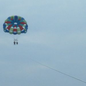 休憩をはさみパラセイリングを体験。どれくらいの高さか分かりませんでしたが、空中散歩は気持ちよく、ぜひ体験してほしいです。