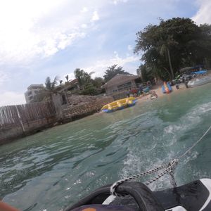 マリンスポーツ遊び放題を予約していきました。お店には日本人もおられて、説明はとても分かりやすかったです。パラセイリングは天気も良く海も綺麗にみえて、とても景色良く、いい体験ができました。それぞれ防水ケースに入れて携帯を2つ持っていけば、船から撮ってくださるのと、空から自分で撮れるので2つの写真を残すことができると思うのでオススメです。ジェットスキーは操縦はとても簡単でレバーを引くだけだったのでどなたでも気軽に出来ると思います。周りに人がいないところまで連れてってくださるので接触の心配はなかったです。スピードもだし放題でスリル満点でした。バナナボート、フライフィッシュ、スキーチューブはそれぞれ違う感覚でとても楽しかったです。フライフィッシュは凧のように中に浮くので新感覚でオススメです。ご飯はBBQで美味しかったです。特にマンゴーはほかの場所よりも格段に甘く1番美味しかったです。お店にある7Dはとてもお買い得です。とても楽しいマリンスポーツ体験ができました。