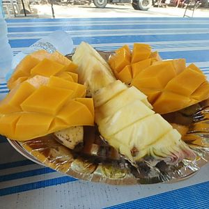 お昼は、バーベキューランチということで、虫と戦いながら食べることになりましたが、味は美味しかったです。デザートにフルーツの盛り合わせがあり、セブの甘くて美味しいマンゴーも堪能することができました。