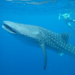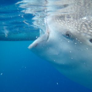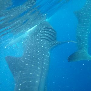 ジンベイザメとの距離はとても近く、常に餌付けして近くを泳ぐようにしてくれるので間近で見れてとても感動しました。