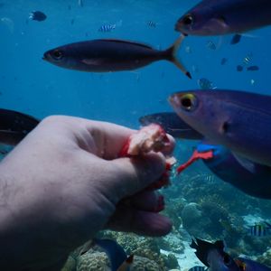 海中はさすがフィリピン、とてもきれいでした。途中でガイドさんが餌をくれるので、手で触れるほど魚が寄ってきます。また写真も工夫して撮ってくれてとてもうれしかったです。マンゴーも美味しかったです。また行きたい。