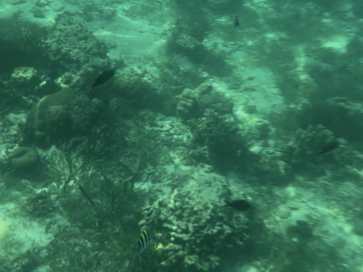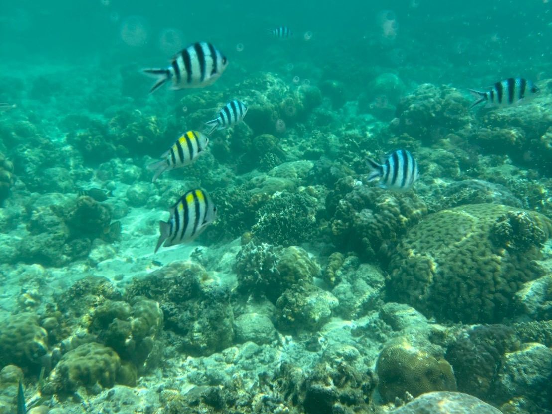 当日は雲が多く安定しない天気でしたが、海の中は透き通っておりたくさんの魚を見ることができました。現地ガイドの方がフグを見せてくれたり、魚がたくさんいるスポットまで誘導してくれたり、バブルリングを披露してくれたりとホスピタリティ溢れる方達で非常に楽しかったです。