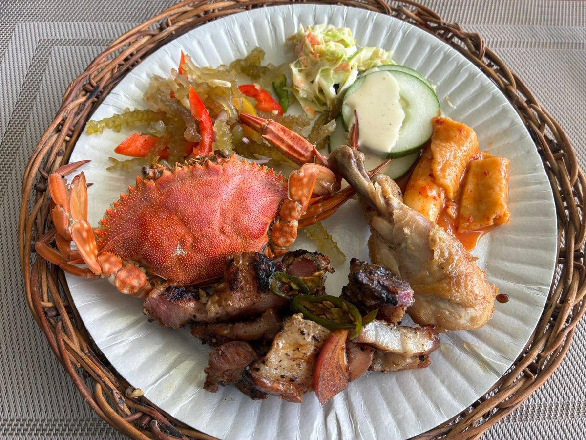 ランチは海上レストランで、エメラルドグリーンの海を眺めながらフィリピンのローカルフードをビュッフェ形式で楽しめます。冷えたビールも購入でき、火照った体に最高のリフレッシュ!